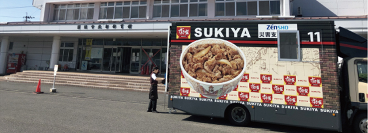 すき家では被災地の方々に対し、牛丼の無料提供を実施しました。