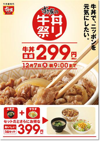 すき家では、11月20日(金)朝9時~12月7日(月)朝9時まで『牛丼祭り』を開催しております。