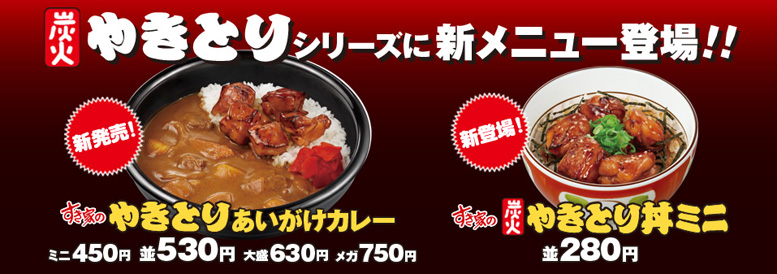 すき家では、人気の「やきとりシリーズ」に"ミニサイズ"が加わりました!