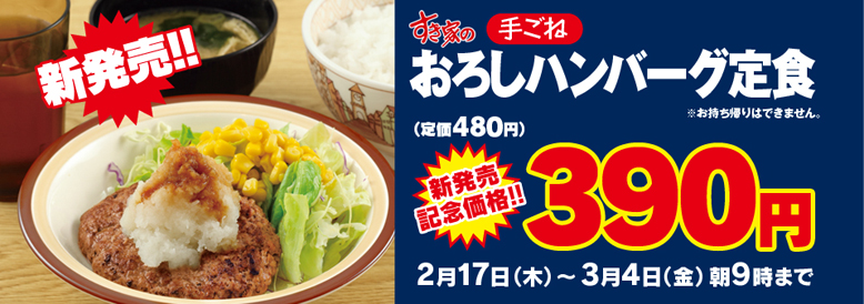 【新発売】おろしハンバーグ定食[新発売!記念価格☆390円]2/17 朝9:00~