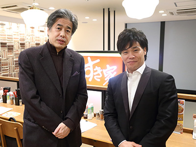 牛丼並盛をお召し上がりになりながらの対談です。