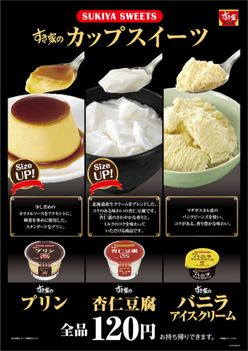 株式会社ゼンショー(代表取締役社長:小川賢太郎 本社:東京港区)が展開する牛丼チェーン「すき家」では、8月8日(水)9時より価格・品質そのままで「プリン」「杏仁豆腐」を増量します。