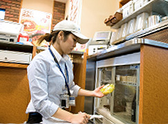 店舗で働くクルーにも手洗い、身だしなみ、健康管理にいたるまで、基本からていねいに指導して安全に努めています。