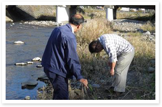 うな川計画河川調査の様子