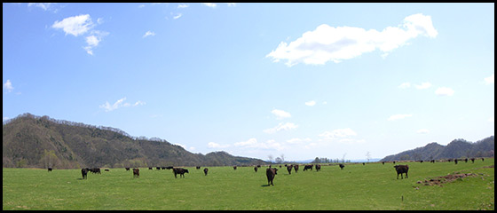 北海道十勝の広大な土地で、牛を飼育。子牛の成長に応じて牛舎を細かく分け、飼料や生育の状態などを調査し、海外での調達や検査に役立てています。