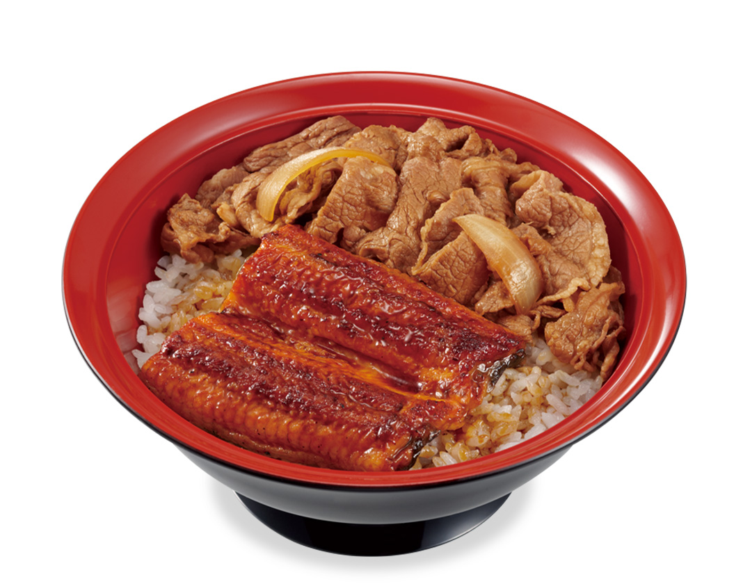 秘伝のタレで煮たすき家自慢の牛肉を、香ばしくふっくらとしたうなぎと一緒に楽しめる商品です。