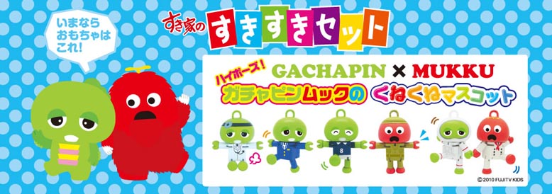 今回は「ガチャピンムック」のくねくねマスコット!あたまやてあしを動かすと思いもよらない楽しいポーズに♪