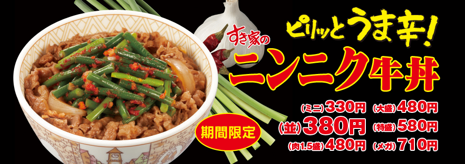 【期間限定】ピリッとうま辛!すき家の『ニンニク牛丼』8月11日9:00より販売スタート!