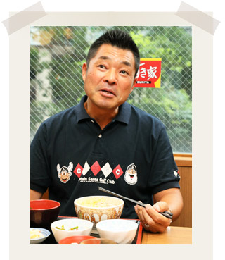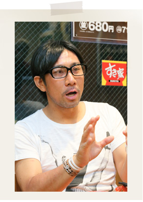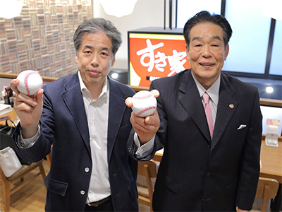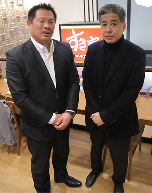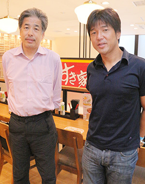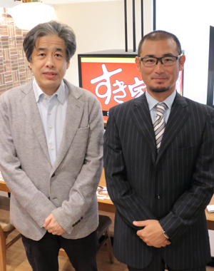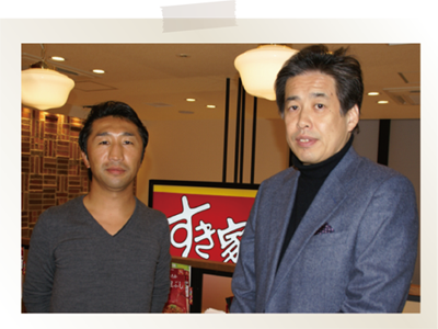 今回はFC東京のクラブカラーである青赤で彩られたすき家飛田給店で、「うな牛」を召し上がりながらの対談です。