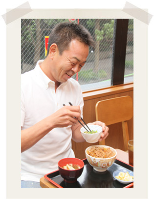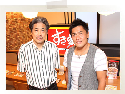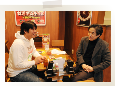 牛丼並盛をお召し上がりになりながらの対談です。