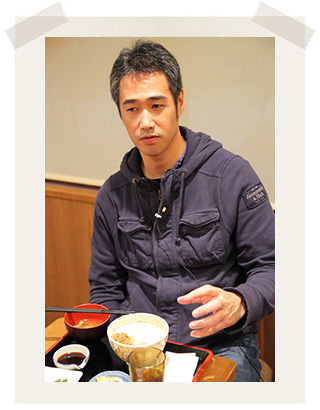 炭火とりマヨ丼を召し上がりながらの対談です。